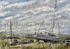 I very rarely use one of my sketches when I am out and about to create a work in the studio. Our Urban sketching meeting for August saw us down on the shore at the Dee estuary in the”boat’s graveyard” The choice of subjects was amazing with rotting hulks as far as the eye could see! I chose a yacht not in its final throes but certainly well on its’s way. I was pleased with the sketch and that day began a painting when I returned to the study – using my sketch to... Read More »