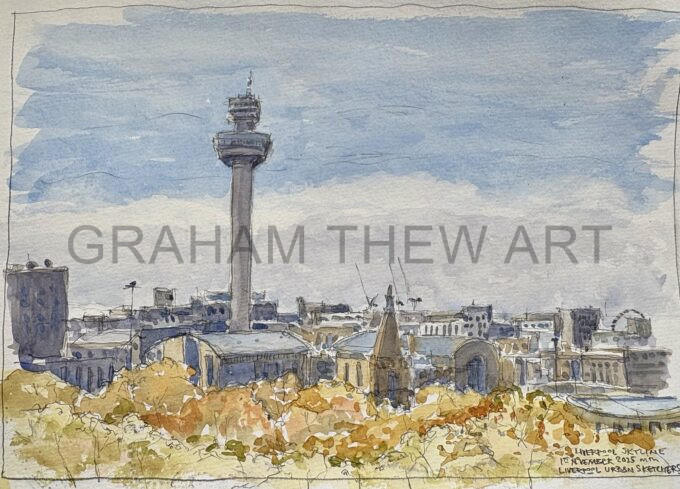 I enjoyed an outing with Liverpool Urban Sketchers last Saturday. We were based at the World Museum in William Brown Street . I climbed to the top floor where there is a wonderful panoramic view of the city. Even though it was a tad ambitious I couldn’t resist trying to sketch the skyline of the city from this unusual vantage point. My Sketch below. I must say the standard of the artwork on show at the throwdown was of an extremely high standard and it was also good to catch up with quite a few faces I hadn’t seen for a while , especially the ladies from Southport… Good Day Out!