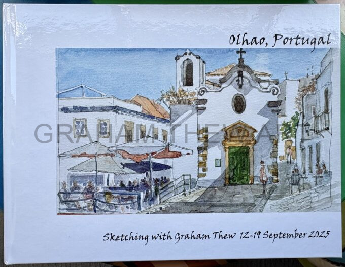 I have just been ambushed by a deputation of the students from this year’s holiday in Olhào at a talk I was giving on Urban Sketching. I could see them lurking at the back of the room and when I finished they cornered me and presented me with an absolutely brilliant momento of our week at the Casa Rosa. A photobook consisting of a great selection of work from each of the students alongside photos of our week. I was very touched by this wonderful gesture and will always treasure it. A special thanks must go to Vince Nevin for putting the book together and of course each and every one of the twelve students for their enthusiasm and super artworks. A great collection of memories from a great week thanks gang!